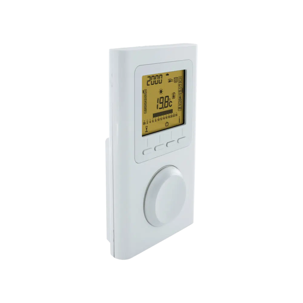 Das TPF-ECO Funk-Raumthermostat von Technotherm ist ein batteriebetriebenes Steuergerät für Heizgeräte mit RF-Empfänger. Es misst die Raumtemperatur und schaltet angeschlossene Heizgeräte per Funk ein oder aus. Über Wochen- und Tagesprogramme lassen sich Komfort- und Absenkzeiten flexibel festlegen. Die adaptive PI-Regelung hält die Temperatur präzise und stabil. Dank bidirektionaler Funktechnik ist das Thermostat optimal auf ECO-Empfänger abgestimmt und kann in Kombination mit Eco-Schnittstelle oder App auch aus der Ferne gesteuert werden.