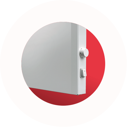 Schlankes Stahlblechgehäuse, Schutzklasse I, Spritzwasserschutz IP24 und integrierter Sicherheitswächter machen den Konvektor für Wohnräume, Flure oder „schwierige“ Räume geeignet. Die E-Serie hat eine elektronische Raumtemperaturregelung und Standfüße für den mobilen Einsatz.